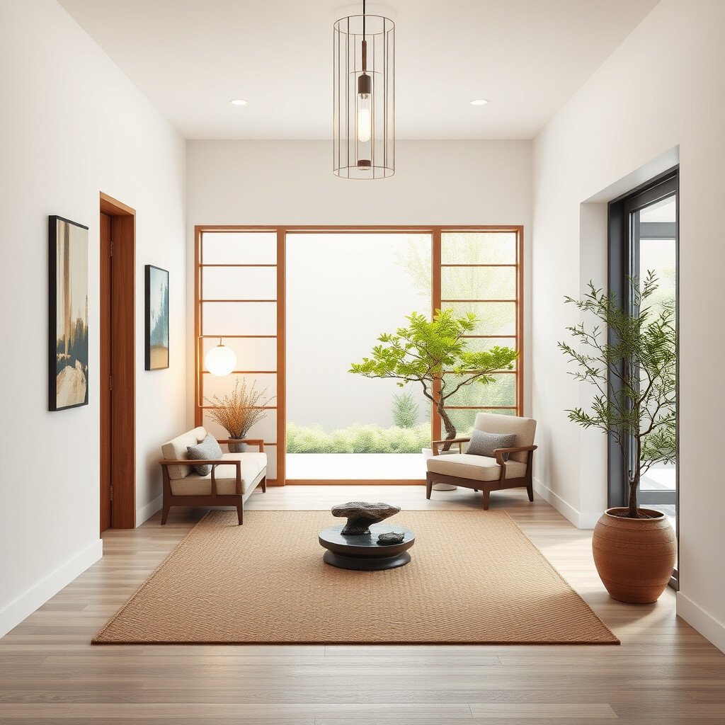 Create a calming space with a Zen-inspired foyer. Use natural materials, low furniture, and soft lighting.