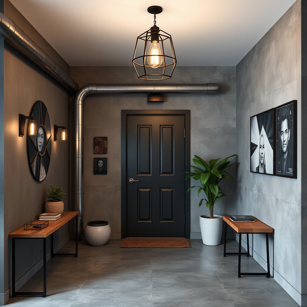 Create a striking entrance with a monochrome color scheme. Use black, white, and shades of gray for a sophisticated look.