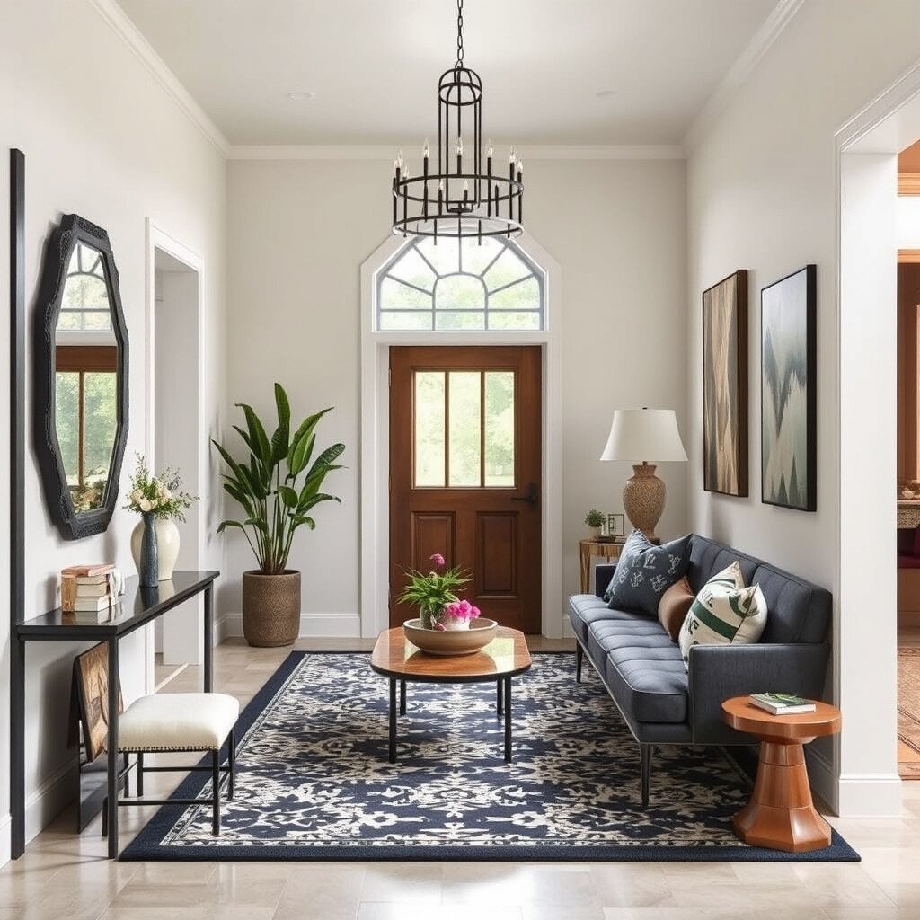 For those who love a bit of everything, an eclectic foyer allows you to mix styles, colors, and patterns.