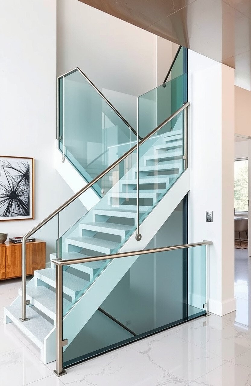 Imagine a staircase that feels like it’s floating in mid-air. A glass railing can create this magical effect, making your home feel modern and futuristic.
