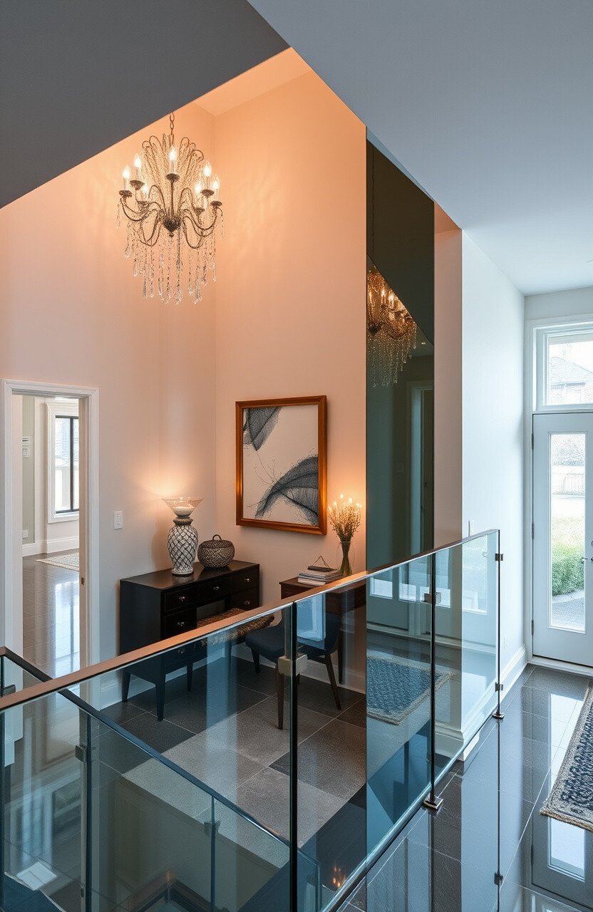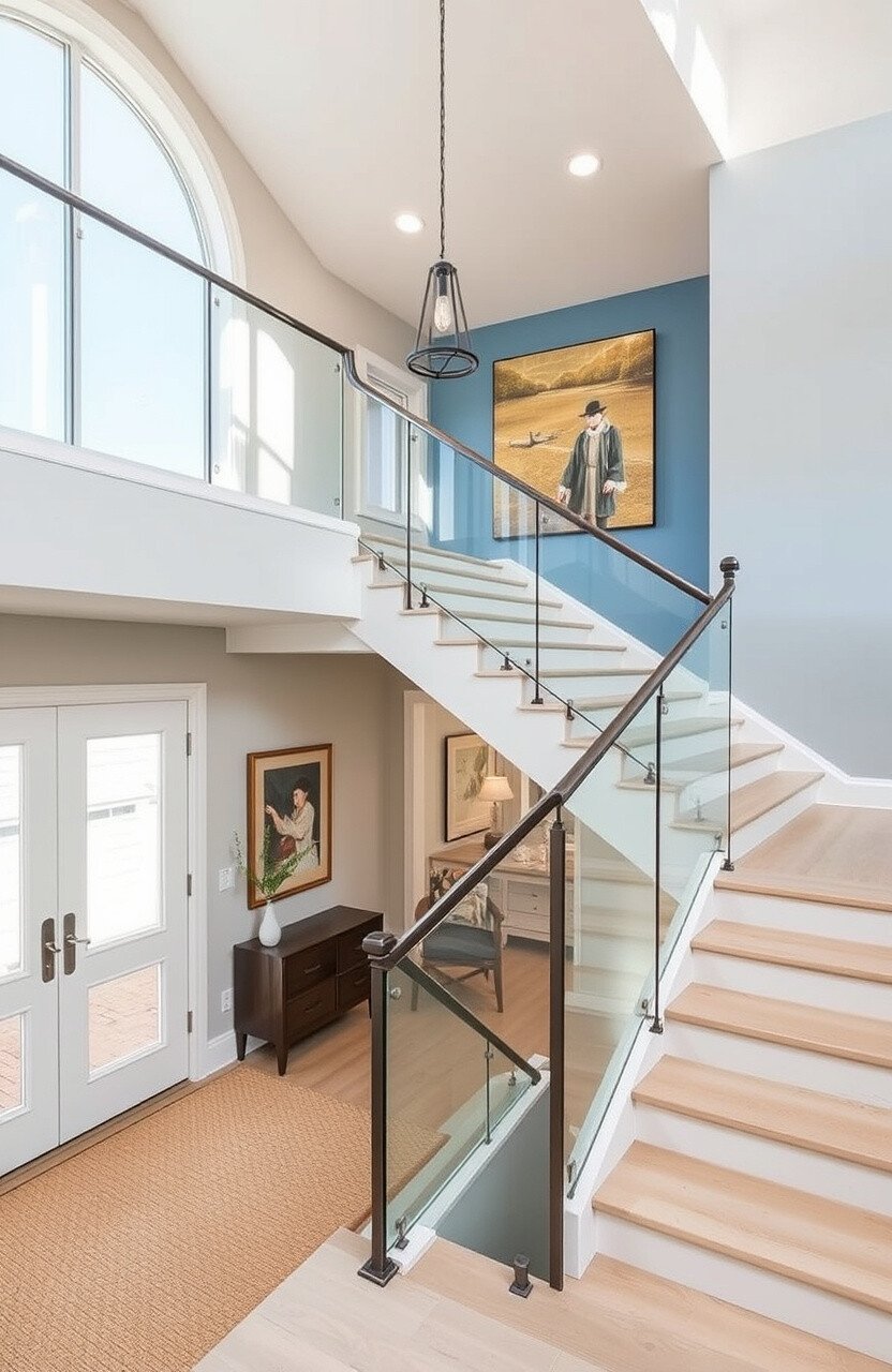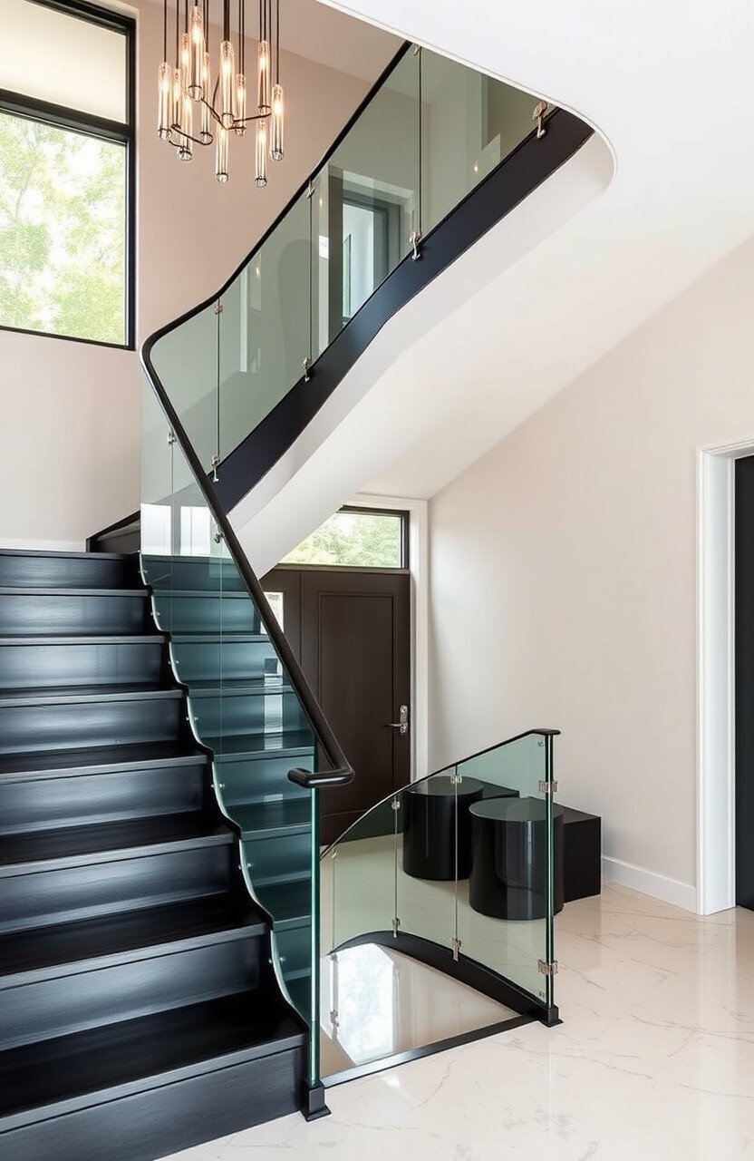 Combine glass with cozy elements. They’re like a warm hug for your stairs.