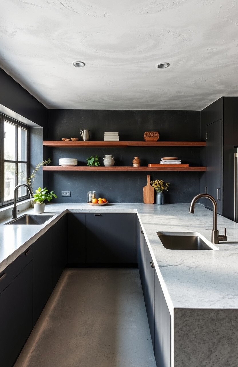 Seal them properly to prevent stains. Mix with open shelving for a loft-like feel. Concrete can be surprisingly affordable. Add pigments for a pop of color.
