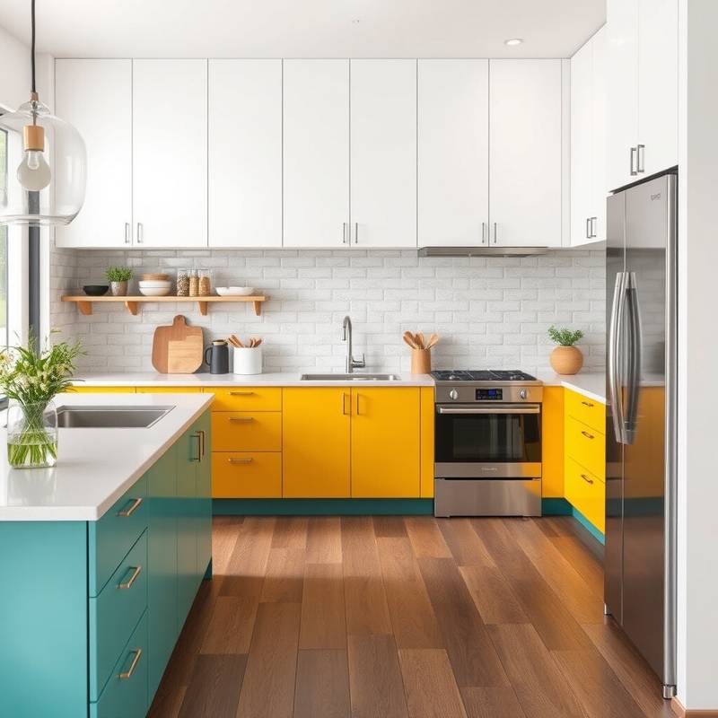 Forget plain white or wood cabinets; think vibrant hues like teal, mustard, or even lavender. This change can instantly refresh your kitchen.