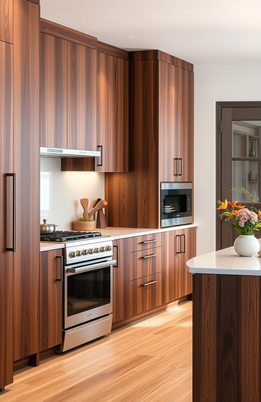Walnut cabinets add a touch of luxury. Their rich, dark tones are simply stunning.