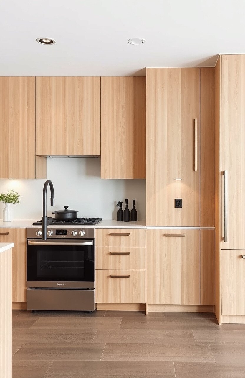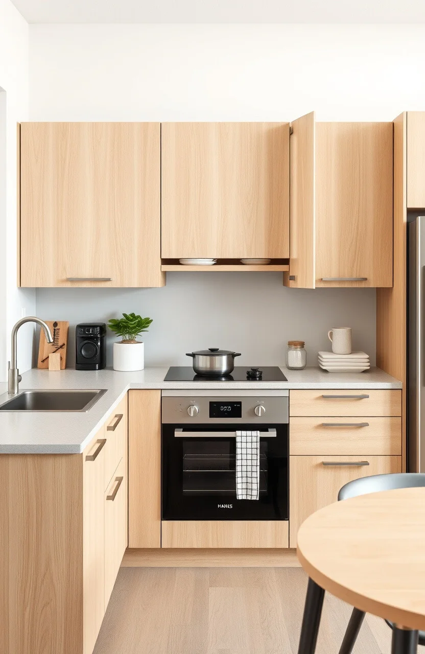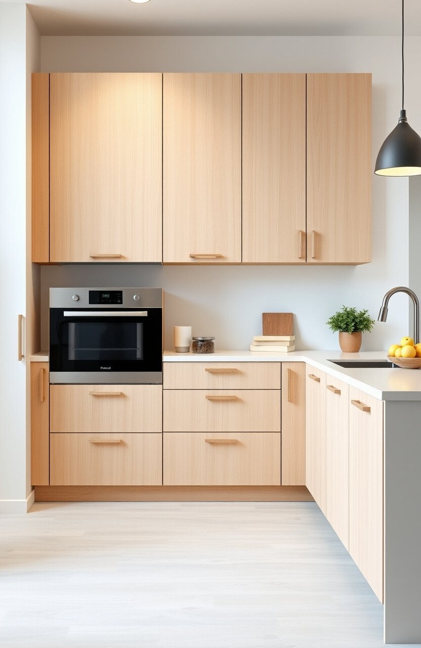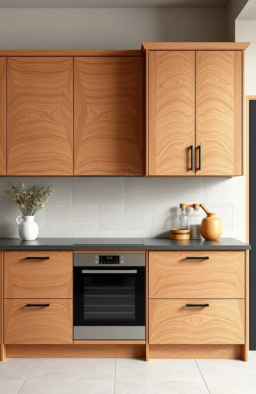 Oak cabinets have a timeless appeal. Their sleek design fits perfectly in a minimalist kitchen.