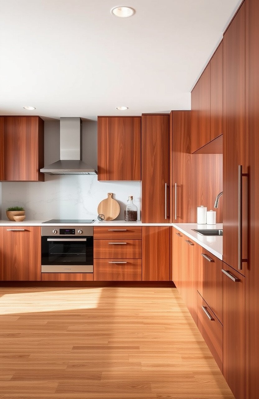 These cabinets give a clean, modern look. Plus, they’re durable and easy to care for.