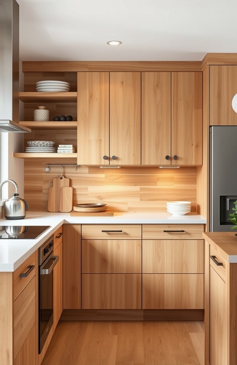 The charm of wood in modern kitchen design is unparalleled. It offers a warm, inviting feel that blends perfectly with minimalist aesthetics.
