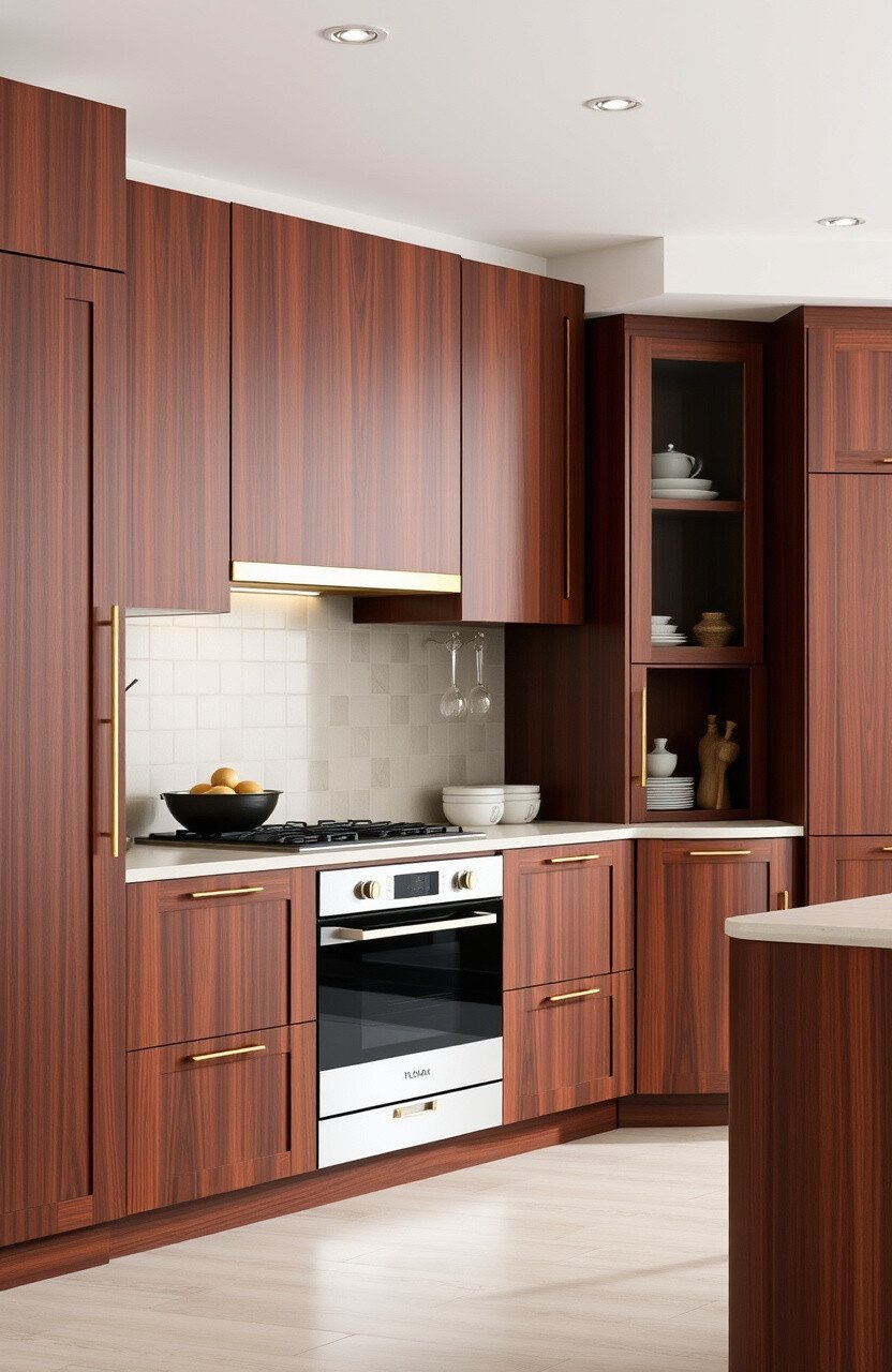 Mahogany cabinets are rich and regal. Their deep color adds sophistication.