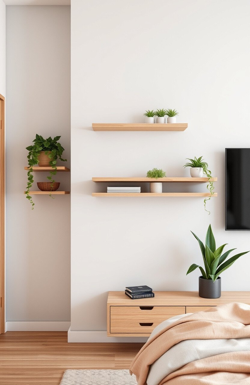 These shelves make your space feel calm and organized. Add a few potted plants for a touch of nature, and you’ll have a serene oasis right in your bedroom.