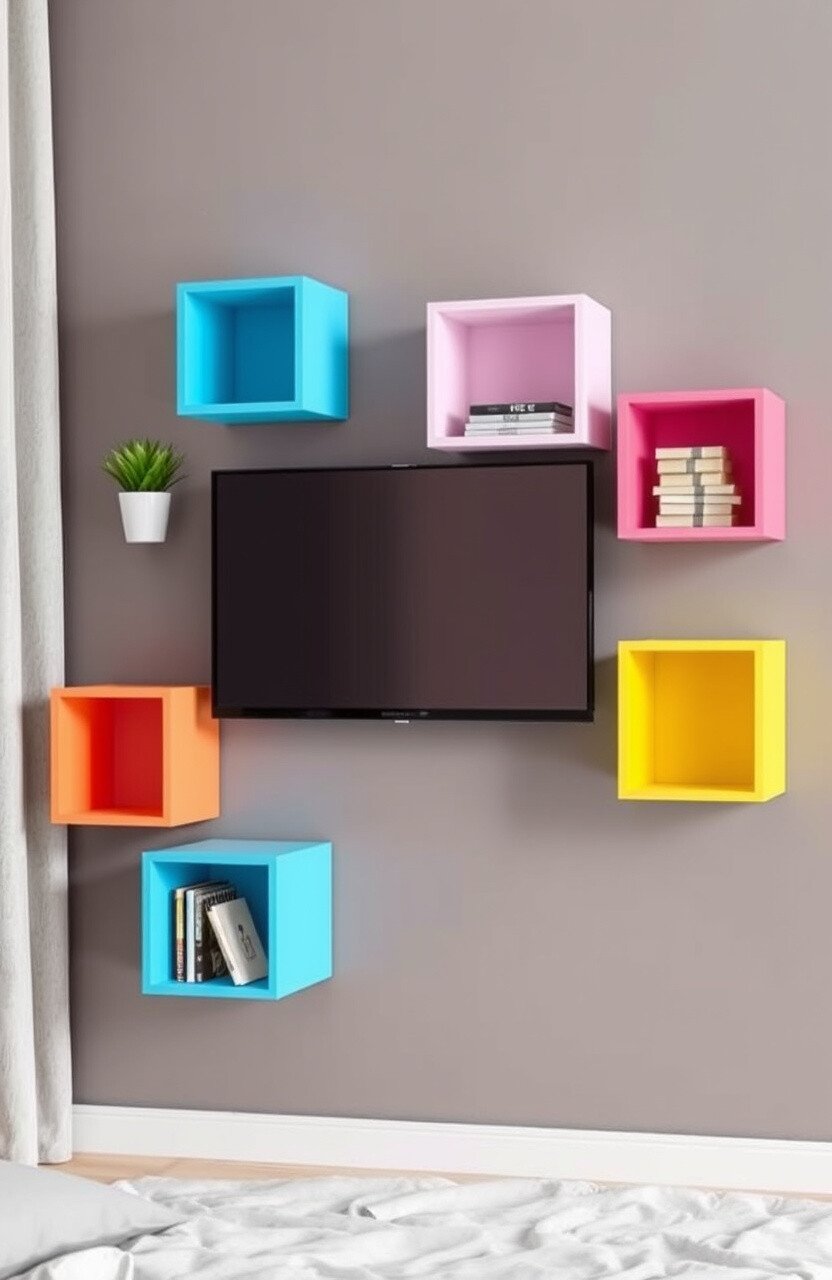 They’re ideal for showcasing art or unique objects, making your TV wall a true conversation starter. While they may require a bit more planning, the result is worth it!