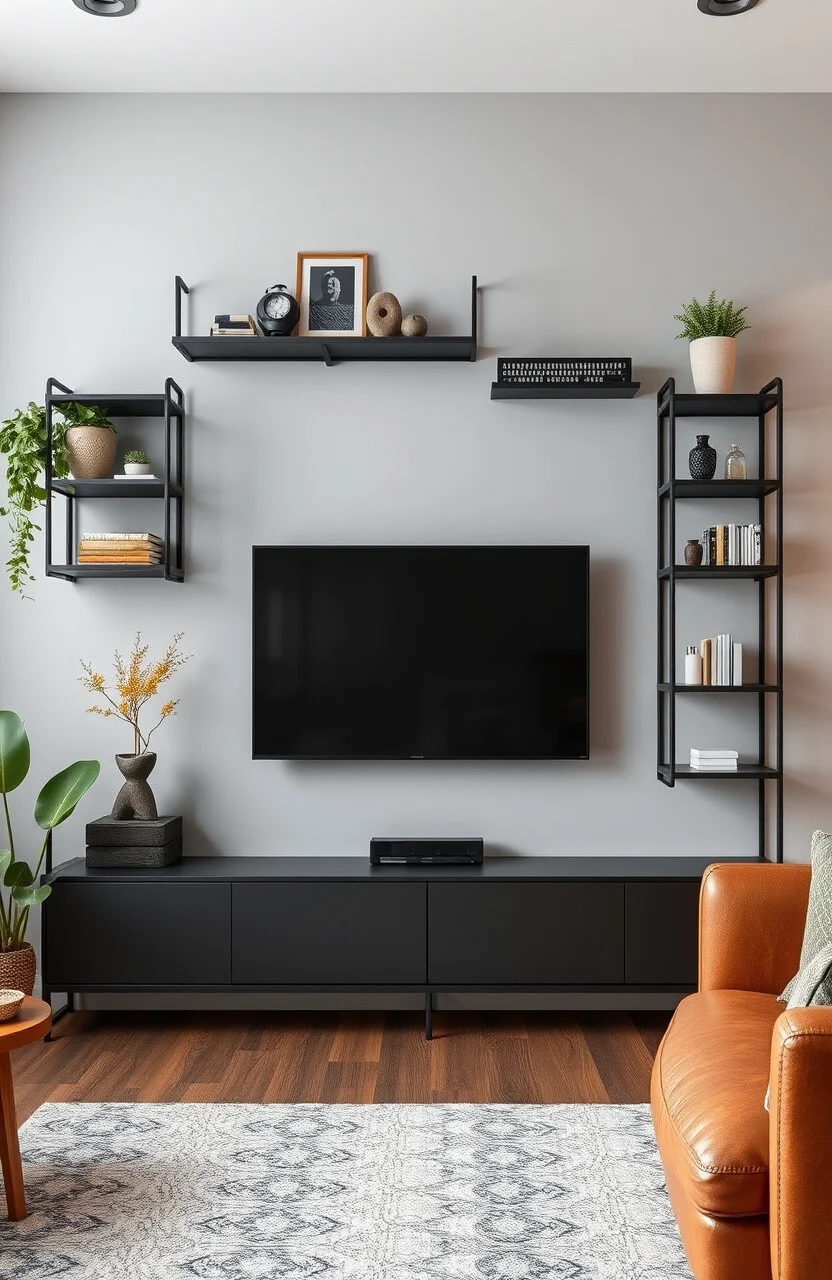 Why not add a splash of color? Bright and bold shelves can make your TV wall the star of the show.