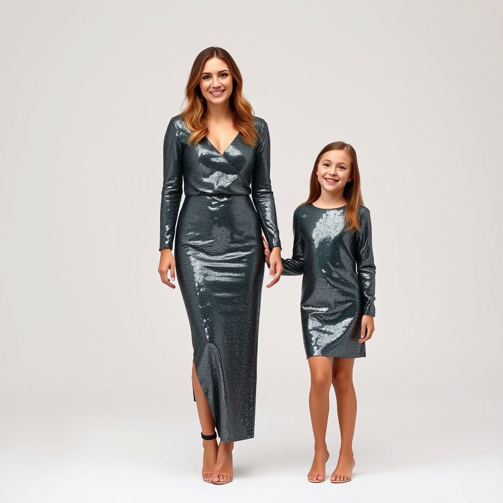 If you’re aiming for a bit of sparkle, sequin outfits are a dazzling choice. Mom and daughter can shimmer in matching sequin dresses or tops that catch the light beautifully.