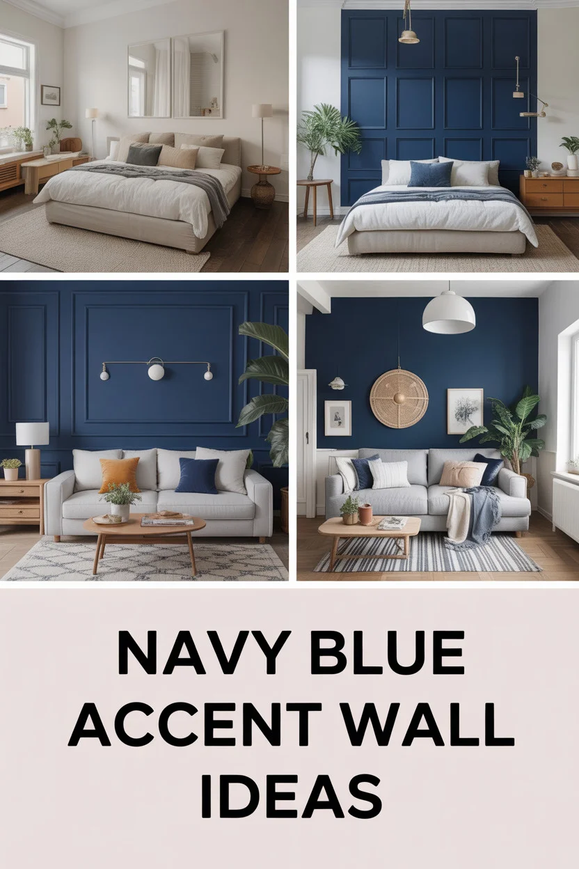 What’s special about this idea is its versatility. It works beautifully in a living room, bedroom, or even a home office. For the best effect, use matte navy paint and reclaimed wood paneling. This not only adds texture but also gives the space an eco-friendly edge.