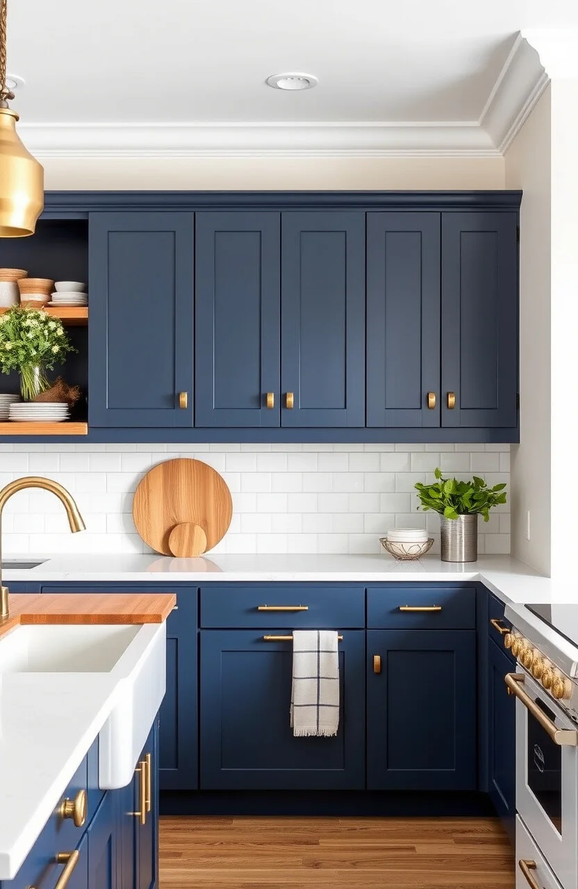 Two-tone cabinets are a trend that combines the best of both worlds. Try navy blue on the lower cabinets and a lighter shade on the upper ones.