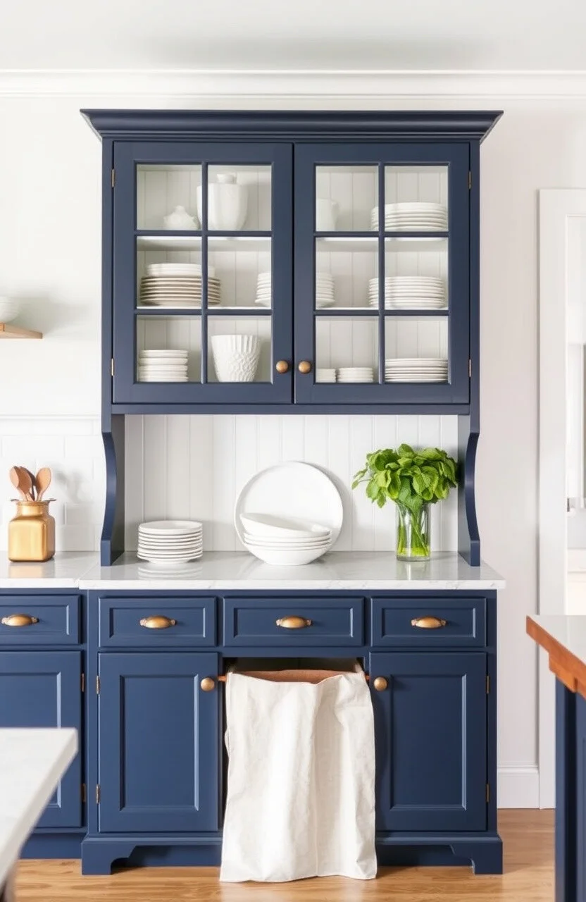 A navy blue kitchen hutch is both practical and stylish. It provides extra storage and serves as a display for your best china or glassware.