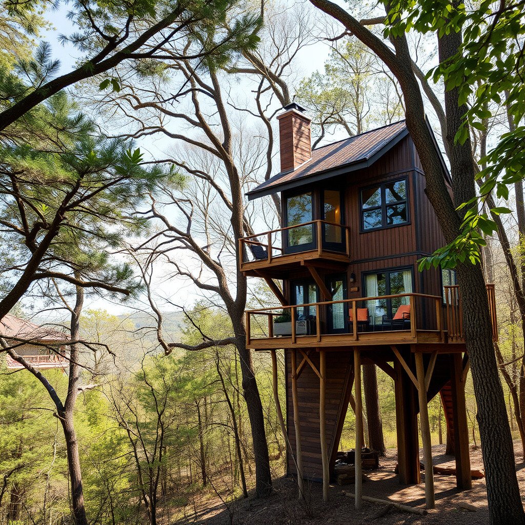These homes are nestled among the trees, offering a unique perspective. Decorate with natural materials and cozy spaces.