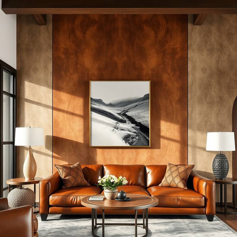Leather accents bring warmth and texture to your decor. Use leather for furniture, pillows, or even wall panels.