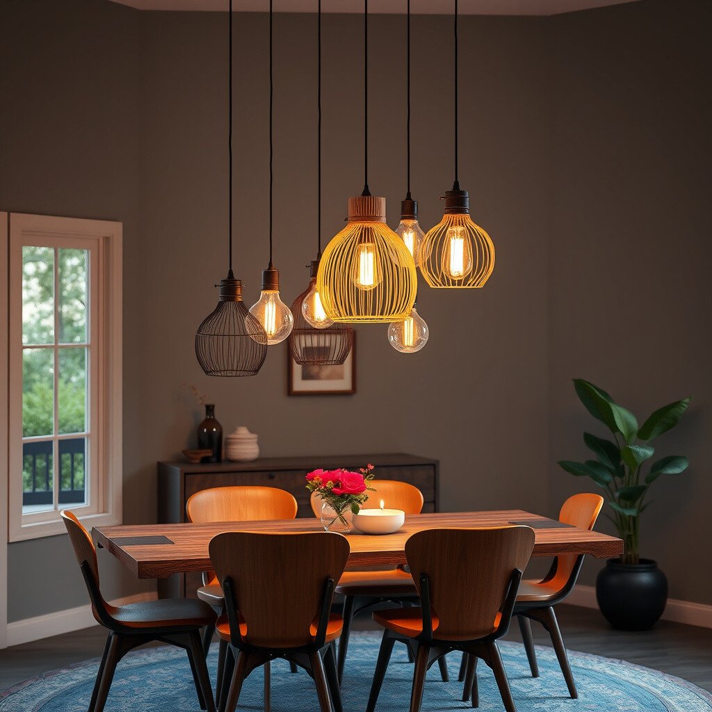 Pendant lights aren’t just for the kitchen island anymore. They can add a touch of elegance and creativity anywhere in your home. Imagine unique shapes and vibrant colors hanging over your dining table or in the foyer. It’s like adding pieces of art that also provide light!