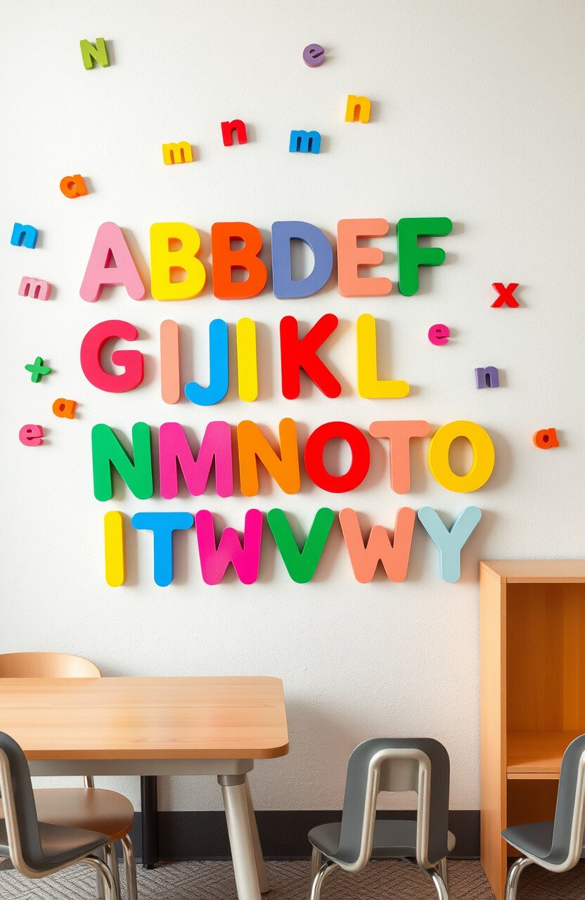 Create an alphabet wall using colorful letters. This is both educational and decorative.