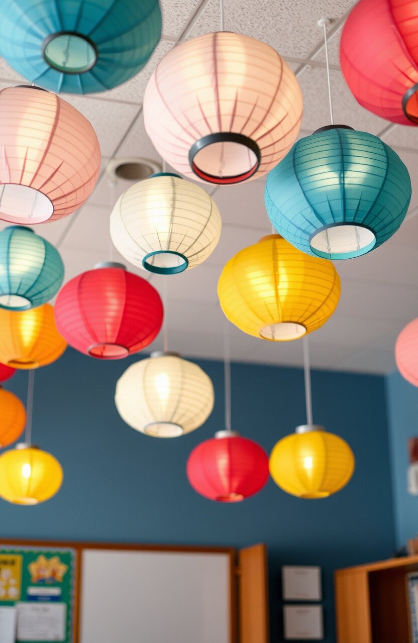 Hang paper lanterns from the ceiling for a festive look. Choose colors and sizes that match the classroom theme.