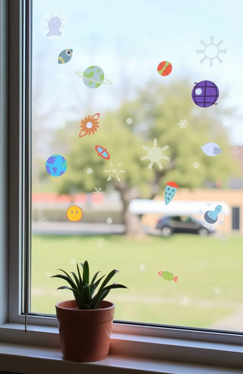 Window clings let light in while still adding decoration. They can be personalized with themes like space or nature.