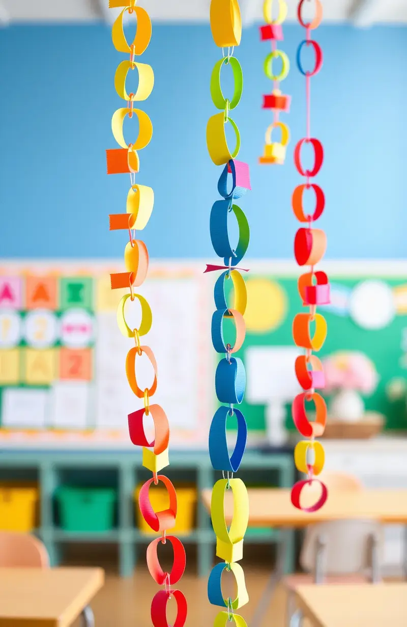 Colorful paper chains add life to any dull classroom. You can use them to make borders or hang them from the ceiling.