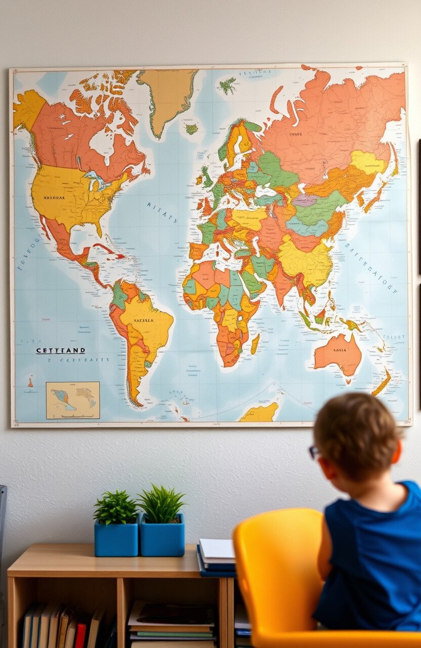 Use maps as wall art for a worldly feel. This encourages curiosity about geography and cultures.