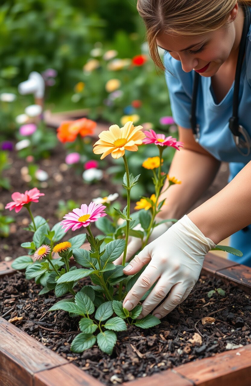 Choose plants that are easy to maintain and bloom beautifully. Personalize it by labeling plants after nurses or adding decorative stones with messages. It’s a low-cost activity with lasting benefits.