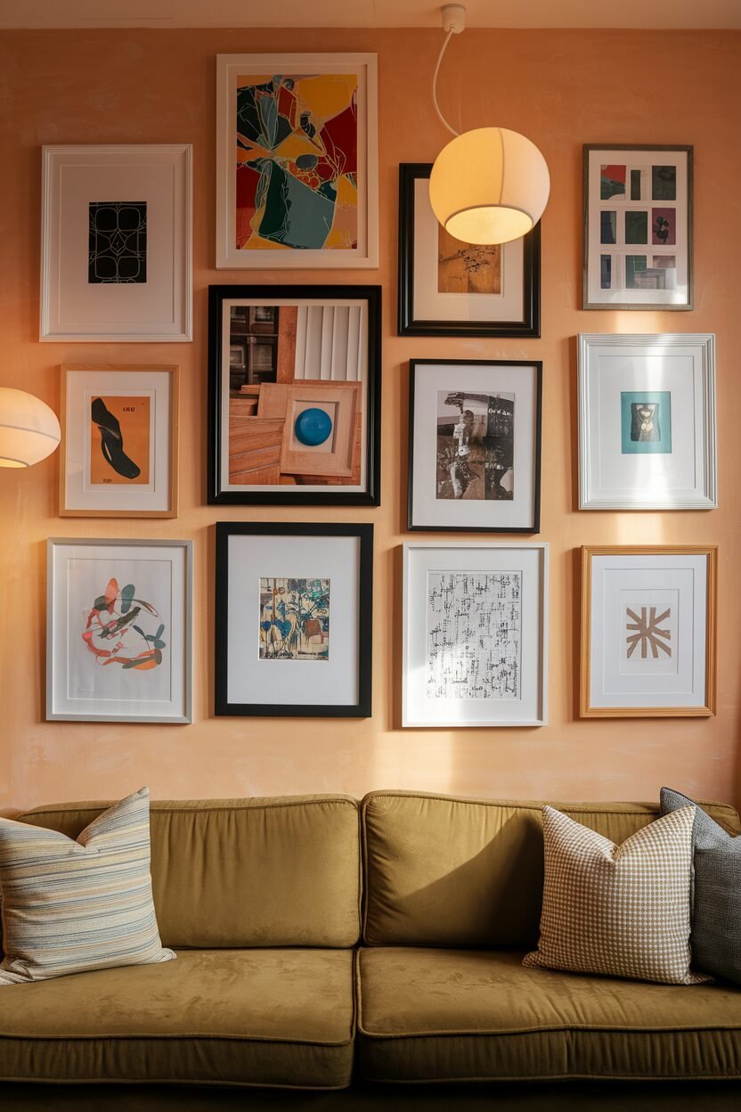 This idea gives your living room a stylish and artistic vibe. Plus, it’s an easy way to refresh your space anytime you want.