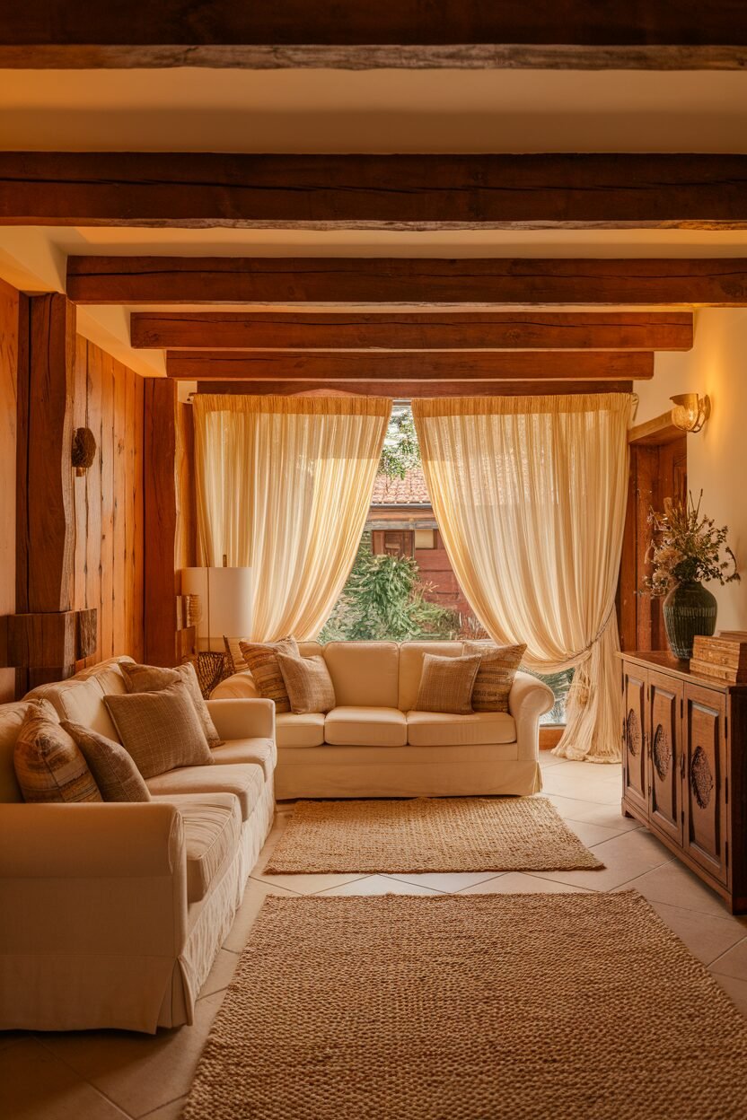 Incorporating rustic wood accents can bring warmth and texture to your living room. Consider wooden shelves, furniture, or decorative elements.
