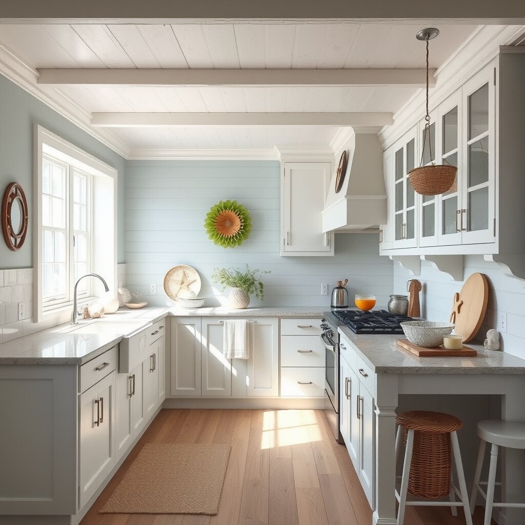 Picture soft blues and sandy whites. A coastal kitchen brings the beach to your home with a relaxed, airy feel. Use light-colored cabinetry and add seashell decor.