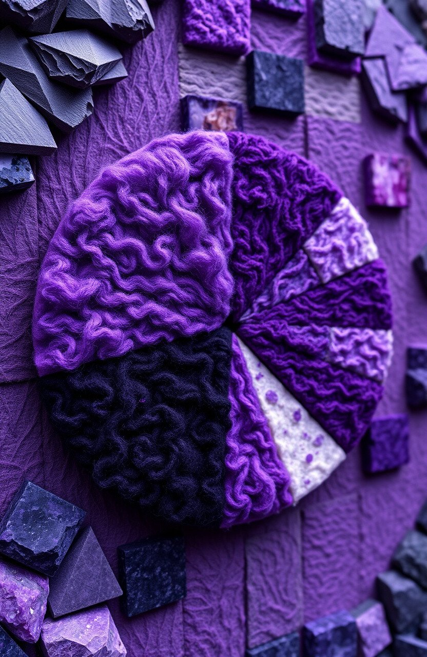 Amethyst is mystical and enchanting. Craft a pie chart with purple wool to showcase its allure. Add white or black for contrast.
