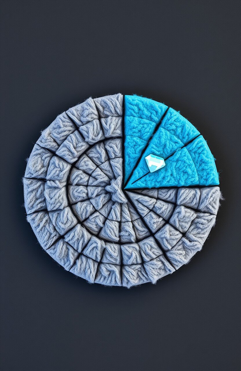 Picture a pie chart with the glittery allure of diamonds. Use light blue wool for the diamond segment, surrounded by a mix of gray and white to represent the stone and the shine. It sparkles with creativity and adds elegance to any space.