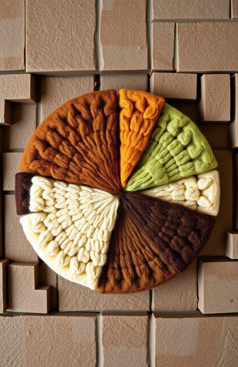 Clay is versatile and earthy. Use brown wool to create a pie chart that highlights its natural appeal. Add beige or green for contrast.