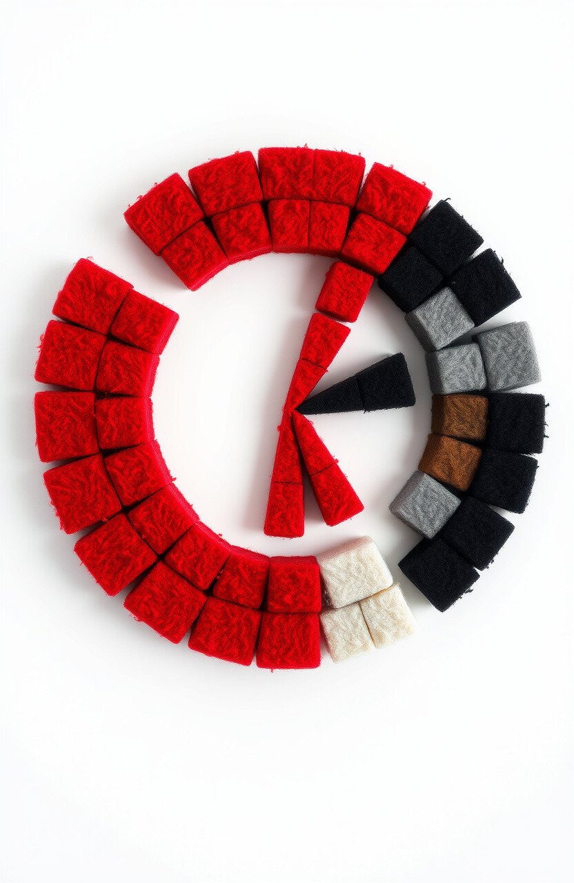 Crimson is rich and bold. Use red wool to create a pie chart that captures its intensity. Add black or white for contrast.