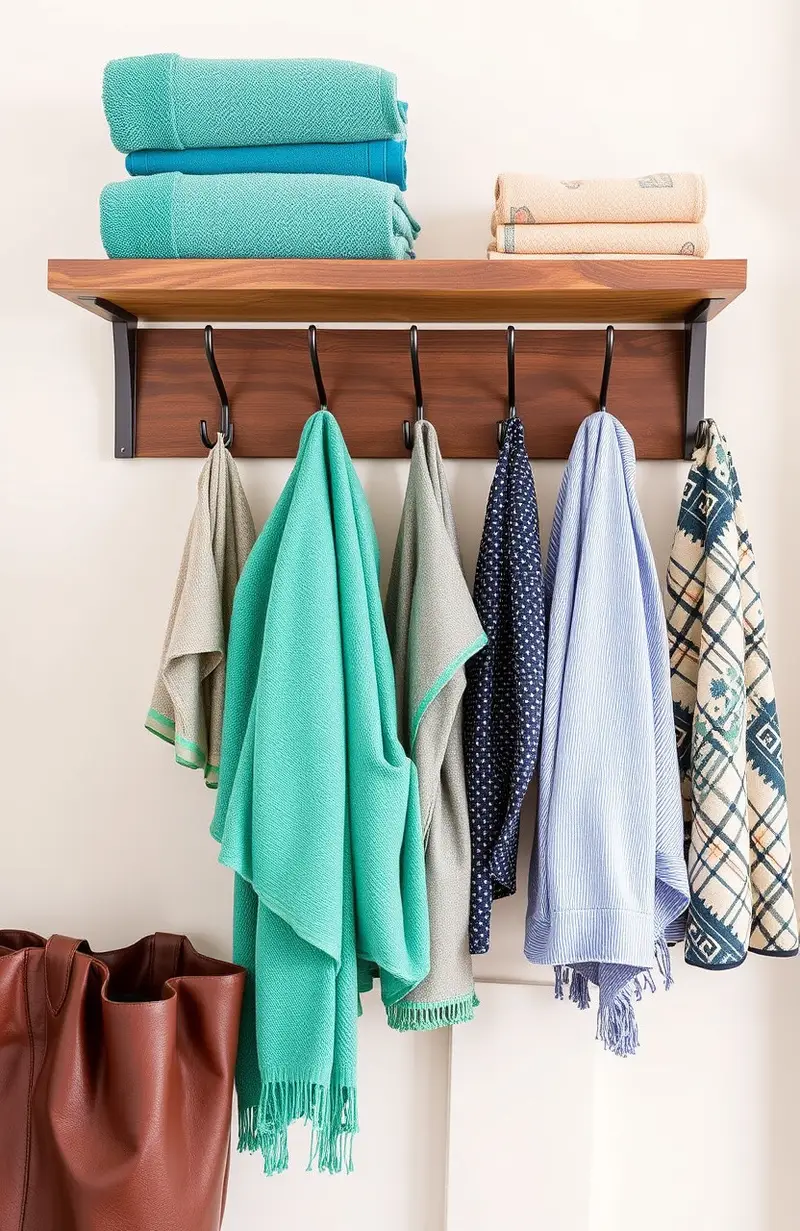 Choose hooks that match your decor style. Add a small shelf above for extra storage.