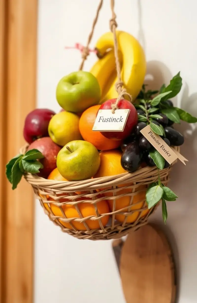 Keep fruits fresh and within reach with a hanging basket. This frees up counter space and adds a charming touch to your kitchen.