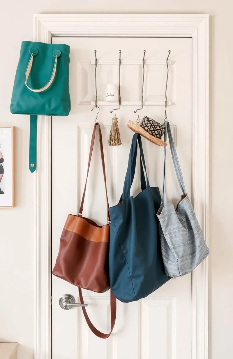 Maximize vertical space by using over-the-door hangers for bags, coats, or accessories. It’s a simple way to add storage without taking up floor space.