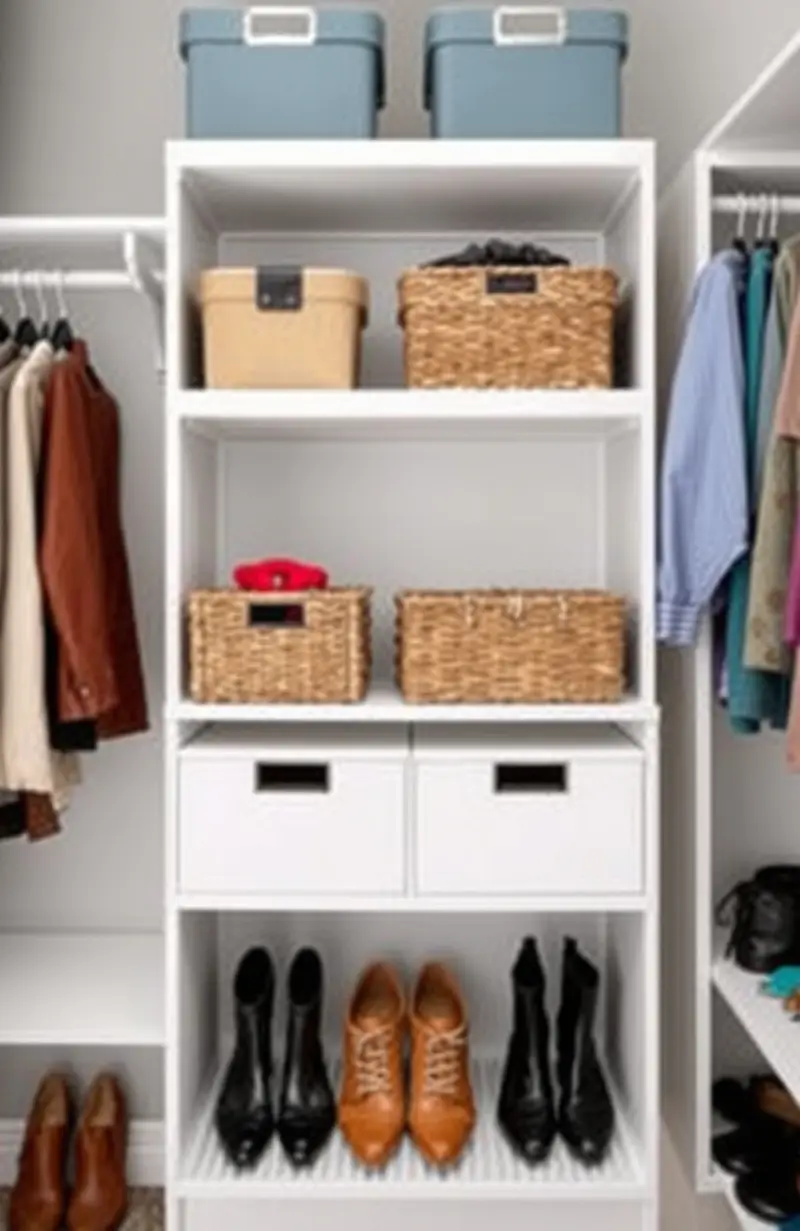 Organize shoes with a dedicated rack. It keeps footwear tidy and easily accessible.