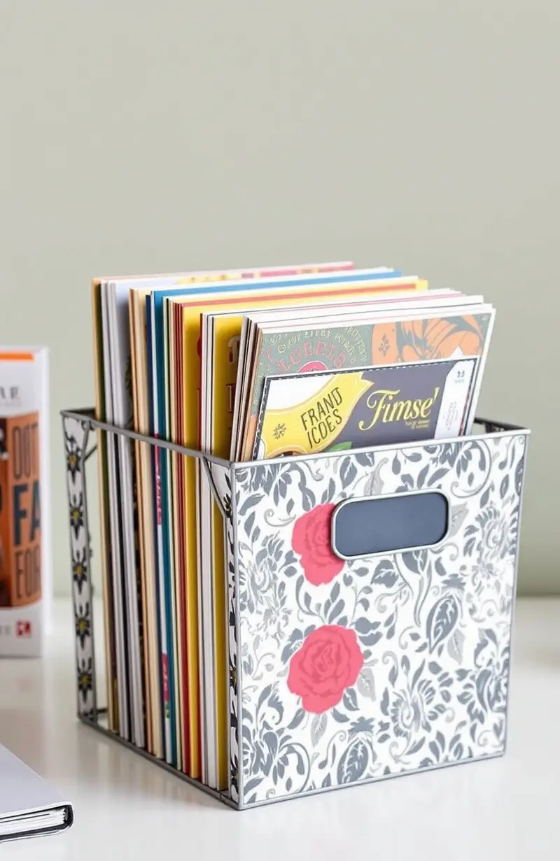 Choose patterns and colors that match your decor. Label bins for efficient organization and retrieval.