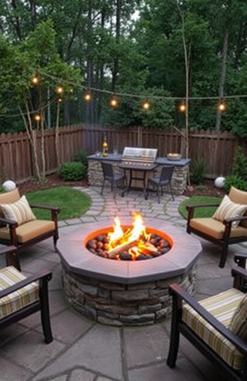 Surround it with comfy outdoor seating for a warm, inviting atmosphere. You might even tell ghost stories as the fire crackles.