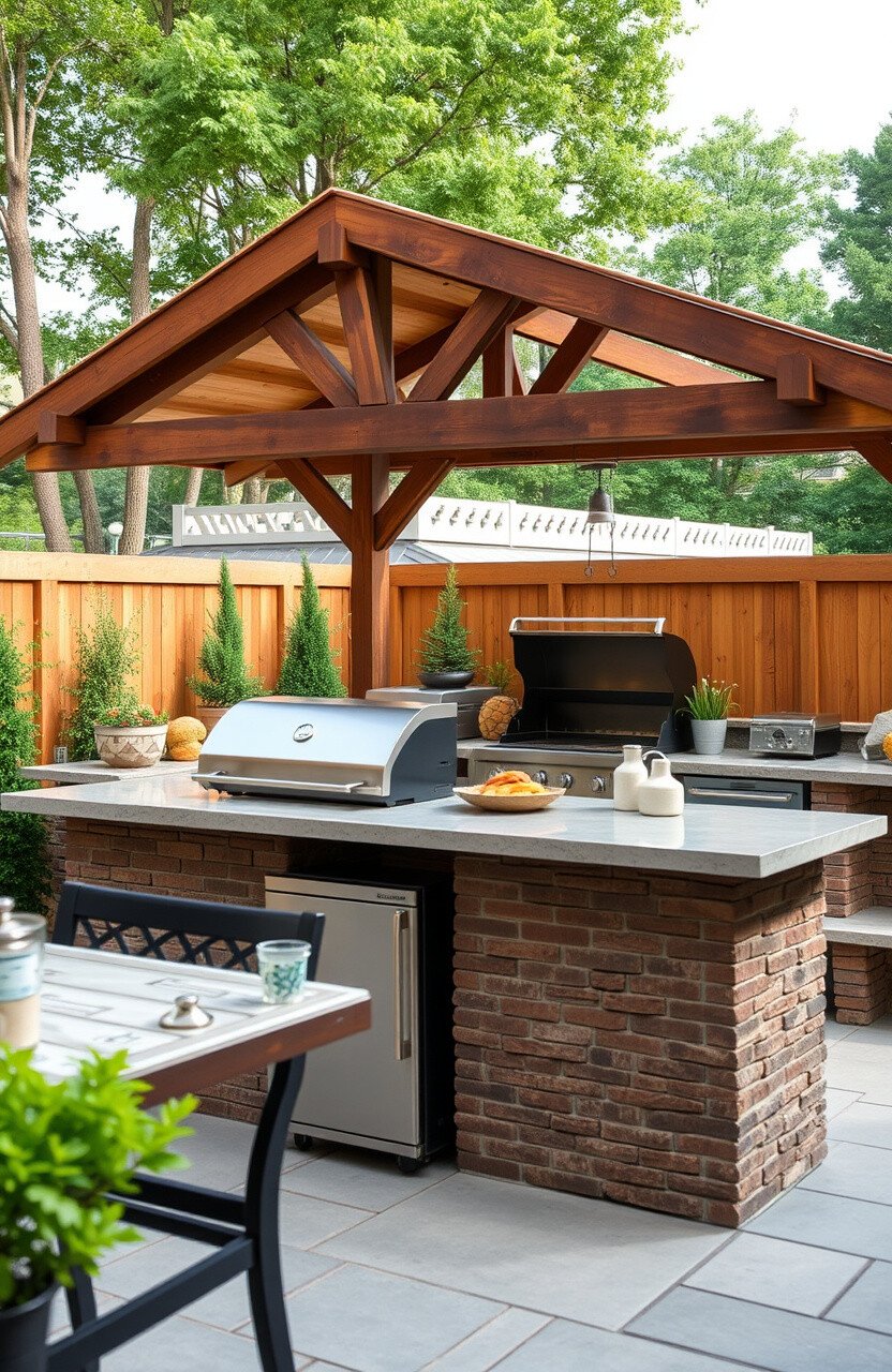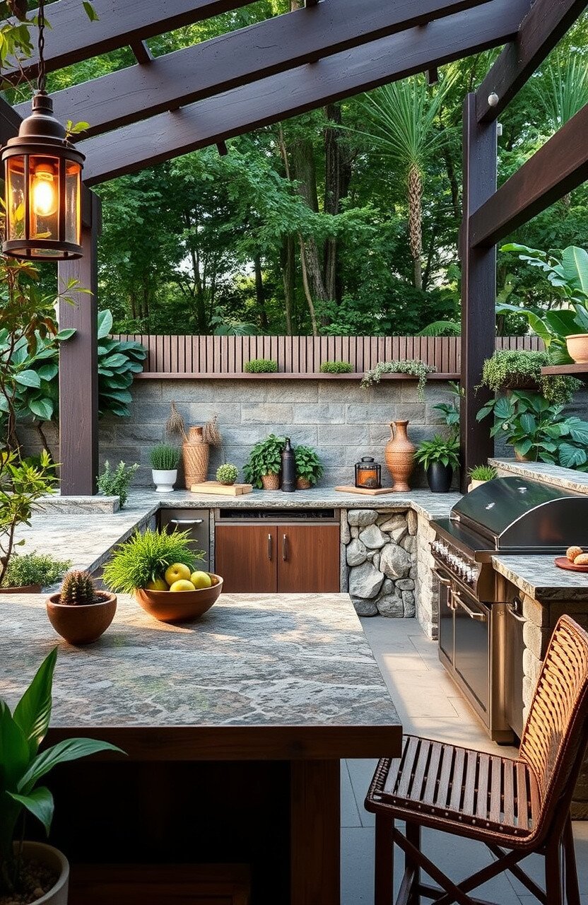 A stone grill brings an earthy vibe that blends seamlessly with nature. It adds a touch of rustic charm to your backyard, making it feel like a cozy retreat.