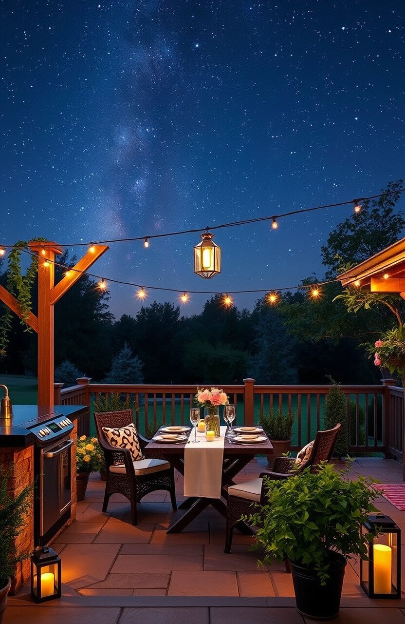 Use lanterns and candles for a magical glow. Each meal feels like a special occasion.