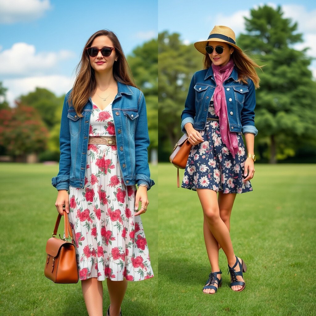 4. Denim Jacket and Floral Dress Combine a classic denim jacket with a floral dress for a timeless look. This outfit is perfect for a picnic in the park.