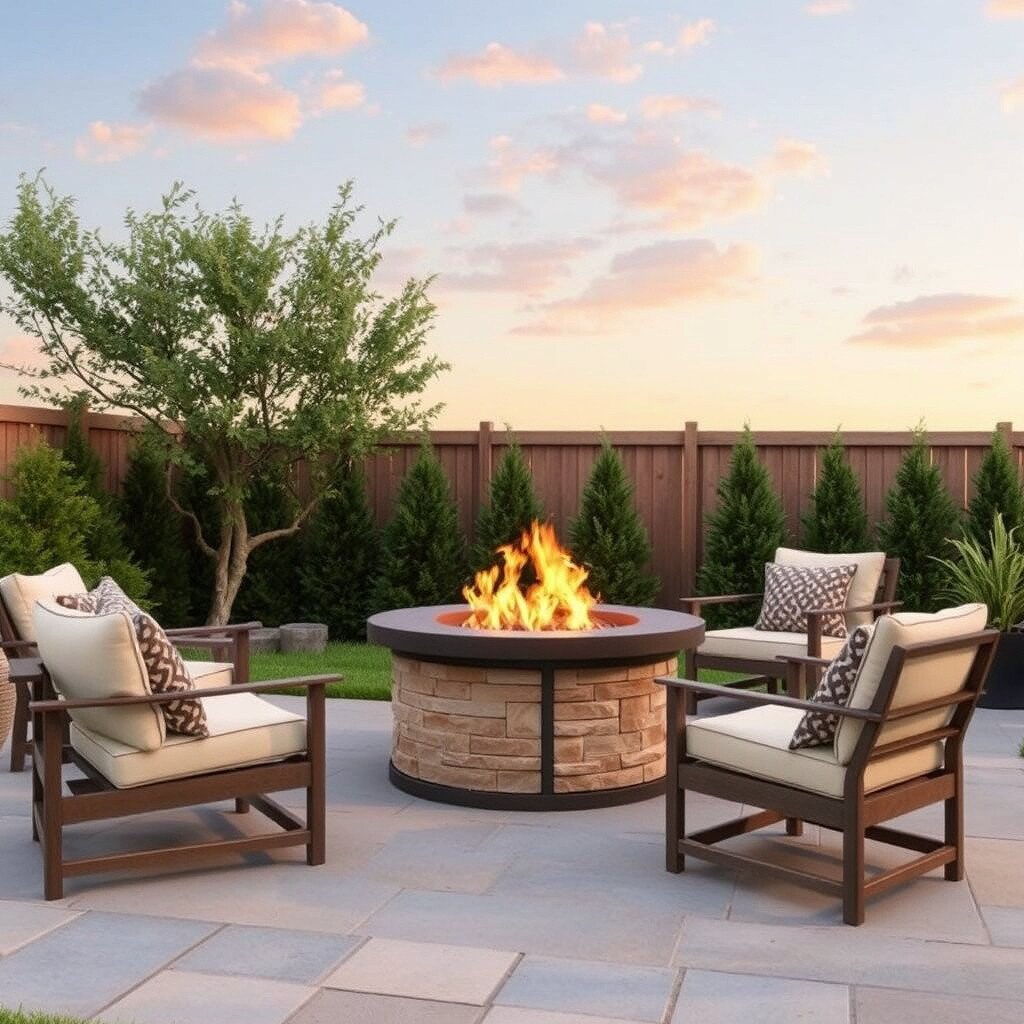 Choose a design that complements your style, from sleek metal to rustic stone. Position seating around for maximum enjoyment.
