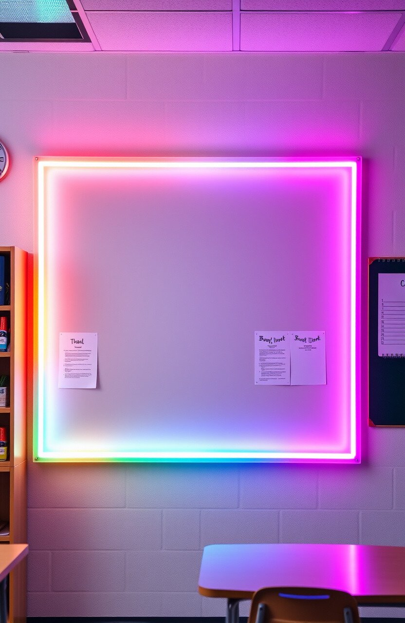 Create bulletin boards that glow with pastel neon borders. Use LED strip lights in shades of mint, peach, or aqua to frame the board. This adds a dynamic edge to announcements and displays, making them hard to miss.