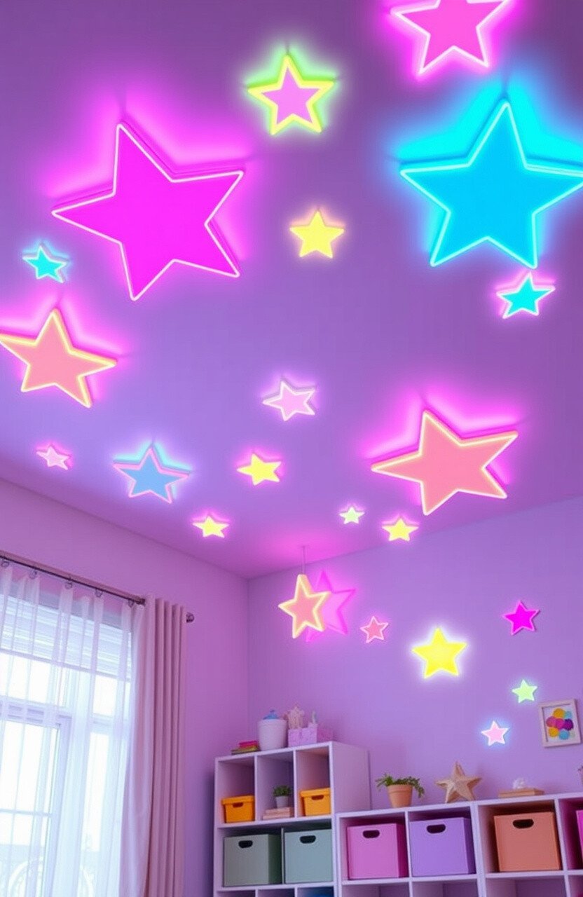 Imagine looking up and seeing stars that glow in pastel neon colors. They’re perfect for creating a calming, dreamy atmosphere.