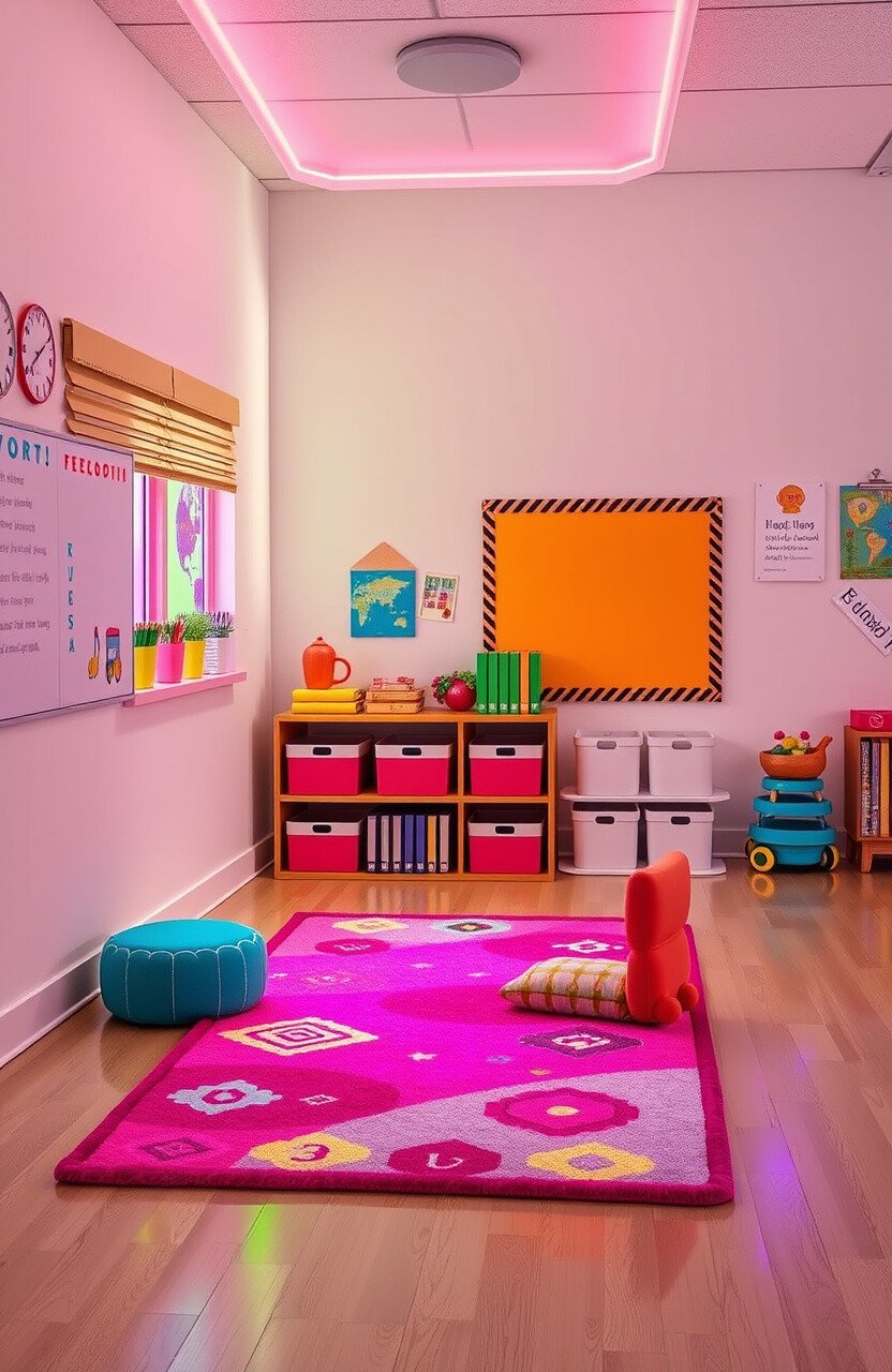 Colorful rugs can transform a classroom in a snap! Imagine a cozy reading corner with a rug that glows softly underfoot.