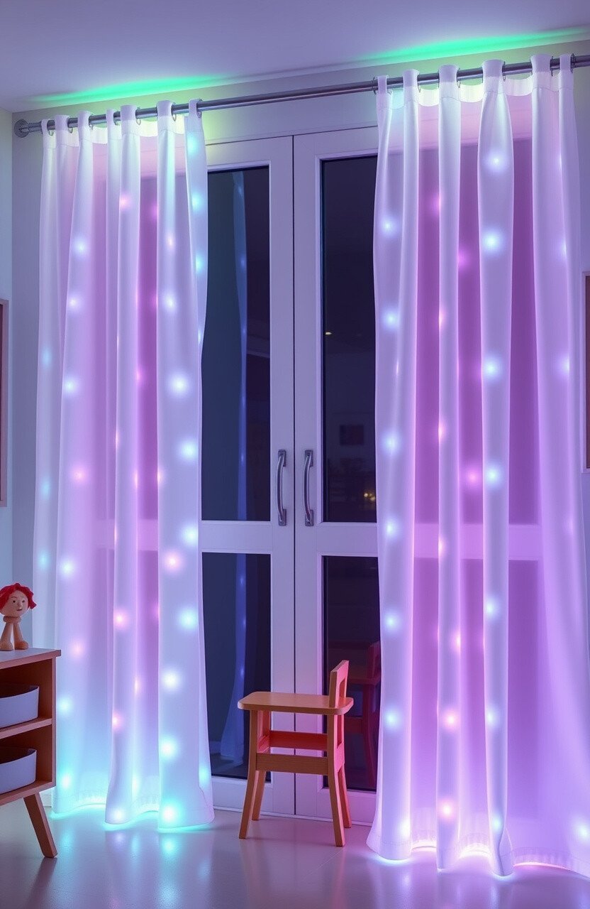 Imagine curtains that light up with a soft pastel glow. They add a touch of magic and make windows look like they belong in a fairy tale.