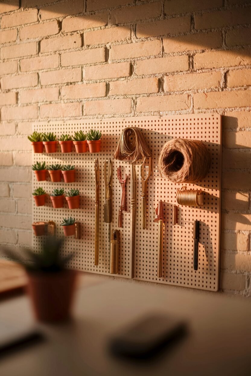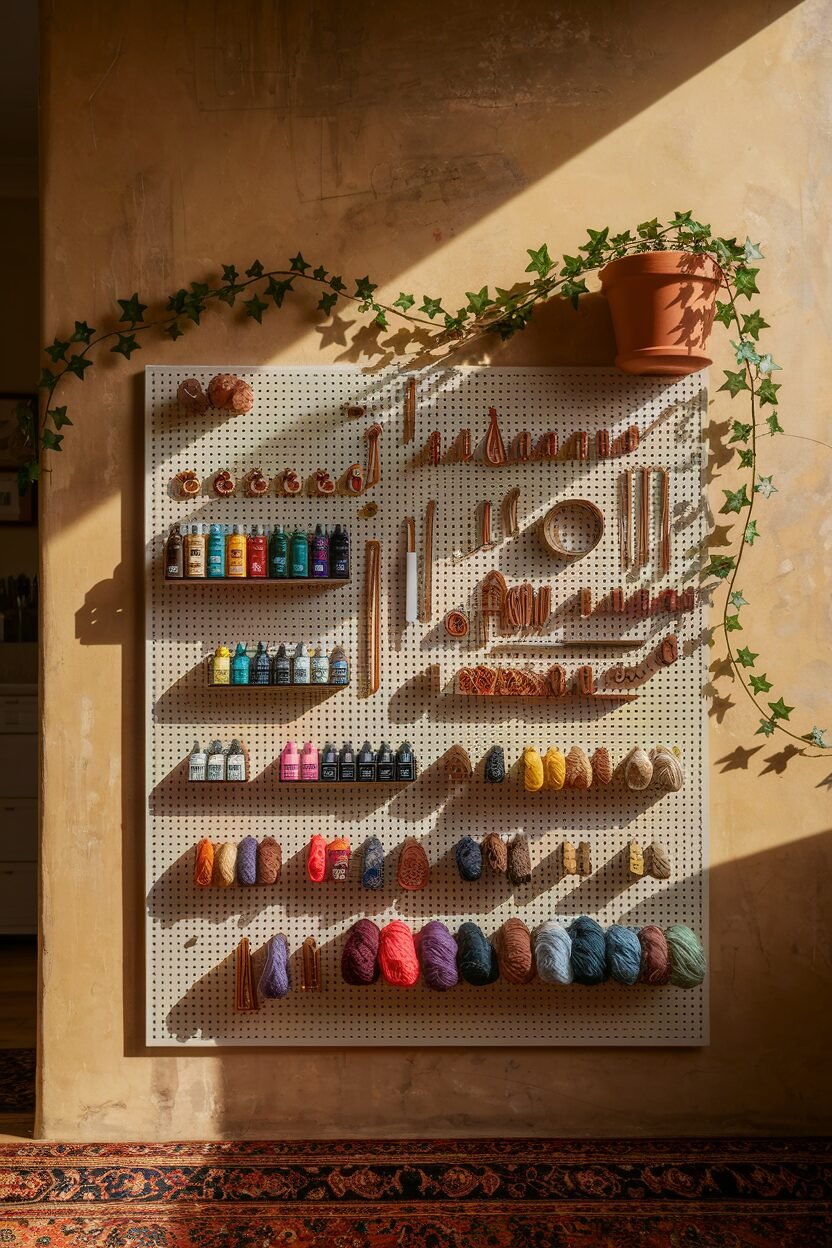 For those who love arts and crafts, a pegboard can become a vibrant workstation. Organize your supplies with colorful baskets, hooks, and shelves to create a dynamic and inspiring space.